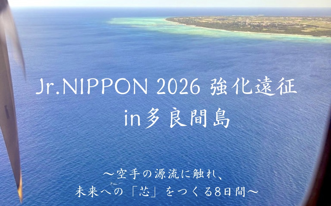 2026年春、Jr.NIPPONは空手発祥の地・沖縄のさらに奥、多良間島へ。 そこにあるのは、コンビニでも観光地でもなく、自分と向き合う時間だけ。 世界で戦うための「揺るがない土台(基本)」と、親元を離れ仲間と生きる「自立心(人間力)」を。 技術と心、その両方を鍛え上げる特別な春が始まります。